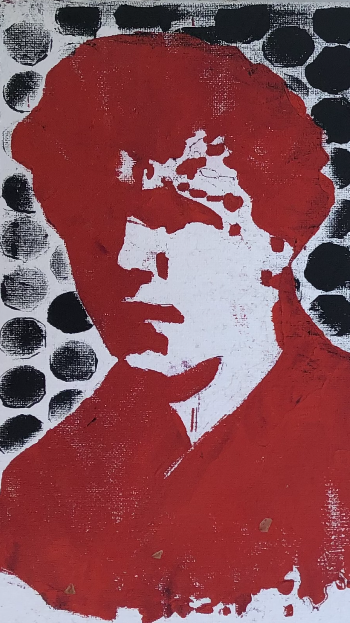 Untitled; acrylic, newsprint transfer on canvas; 11x14 inches